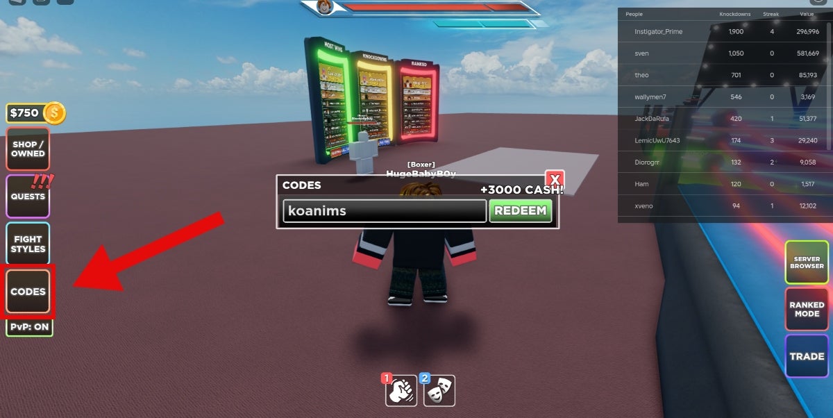 Redeeming codes in Untitled Boxing Game is quick and easy: