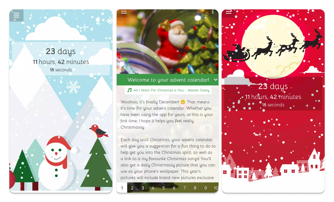 What better way to build excitement for the impending holiday than a Christmas countdown? This festive app allows you to set colorful Christmas wallpaper backgrounds paired with a customizable countdown clock to December 25. As the big day approaches, watch the minutes and seconds tick by. You can even share your countdown timer on social media to spread the holiday hype.⏳