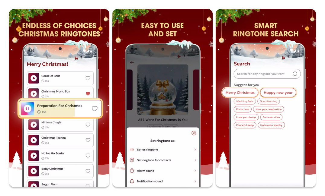 Christmas Ringtones provides a wide selection of free Christmas ringtones, ensuring you have the perfect sound to match every moment. From classic holiday tunes to modern Christmas melodies, this app has curated a diverse range of options for you to choose from. Whether you want to set a cheerful ringtone for incoming calls, create a festive alarm clock, or add a special touch to your notifications, this app has everything you need.🎵🔔