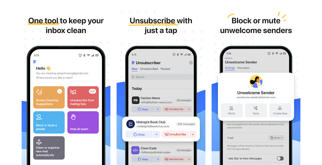 If you're searching for the best Android email app focused on mailbox management and automation, Clean Email is an excellent choice. While it isn't an email client for sending new messages, it offers a range of features that enhance any email client from our list. Clean Email simplifies the process of reading, organizing, and cleaning up your inbox, making it easier than ever to manage your messages.