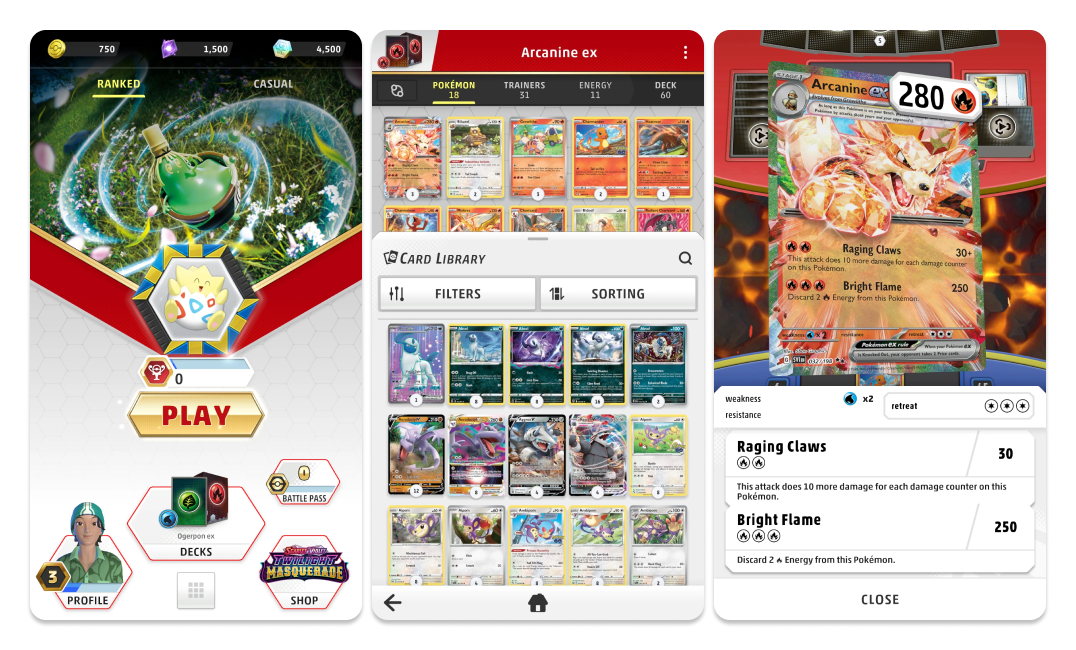 Getting started is easy—choose from Grass, Fire, or Water decks to jump right into the action and learn as you go. Expand your collection by earning cards, opening booster packs, and trading with others to craft the perfect deck around your favorite cards. Customize your experience by building your own decks, personalizing the look of your cards, deck boxes, and avatar, and connect with friends online. Once you feel confident in your skills, challenge other players or join tournaments to showcase your deck design and game knowledge!