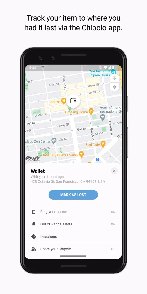 - Web App: Find your phone's location using the Chipolo web app, even if it was lost elsewhere.