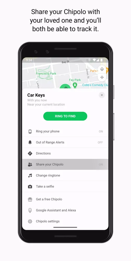 - RING: Use the Chipolo app to ring your item or double-click the Chipolo to ring your phone.