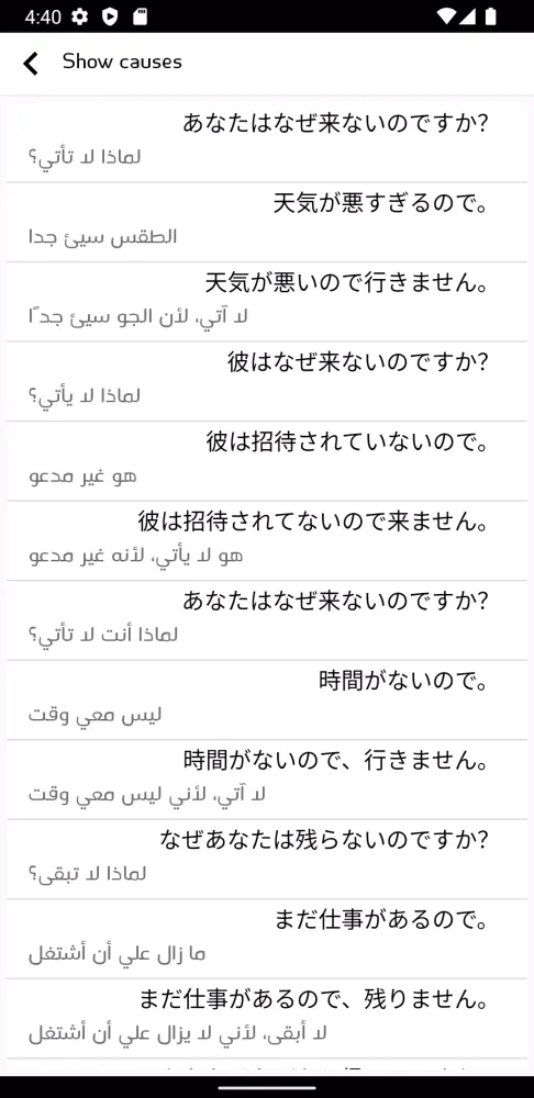 - Arabic-Japanese Translation: Quickly grasp meanings with translations provided in both languages, aiding comprehension.