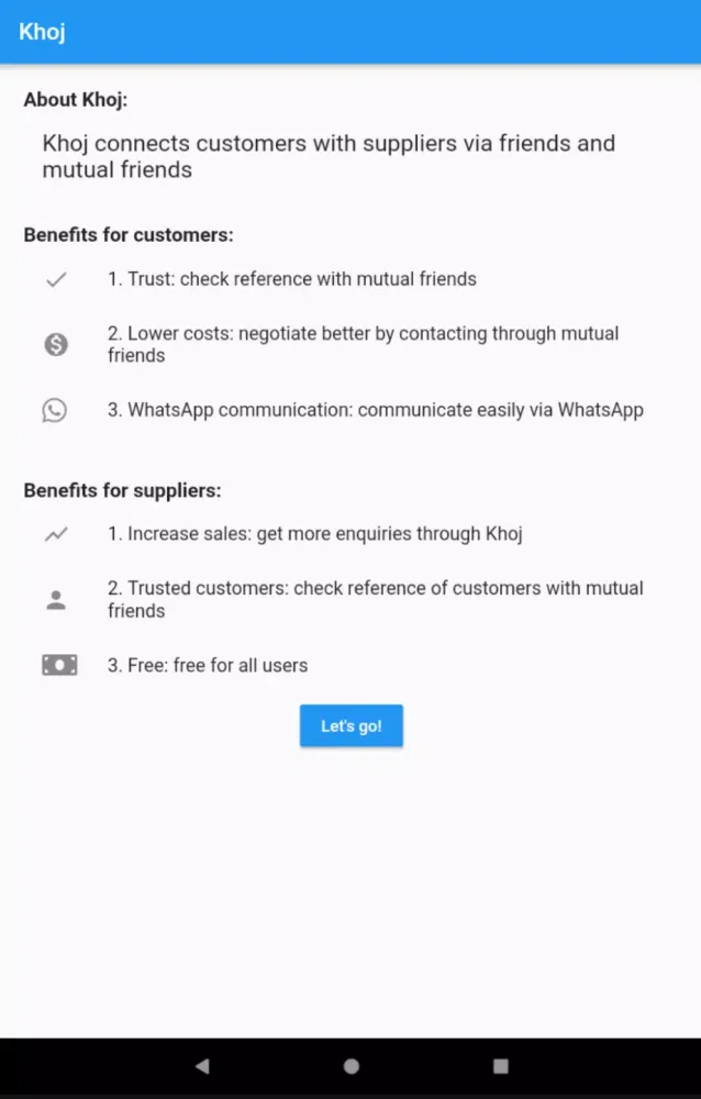 In conclusion, Khoj Grains (खोज) stands out as an indispensable tool for anyone involved in the grain, oil, or spice trading business. Its combination of real-time pricing data, extensive networking capabilities, and user-friendly design makes it an invaluable asset for traders seeking to thrive in today's dynamic market environment. Download Khoj Grains today and experience the power of seamless connectivity and informed decision-making.