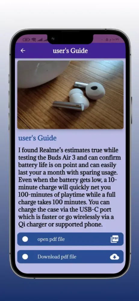 The Realme Buds Air 3 Guide app offers an extensive array of features designed to cater to every aspect of the product. From reviews and specifications to user manuals and design details, this app provides everything you need to know about the Realme Buds Air 3. Here’s a breakdown of what you’ll discover: