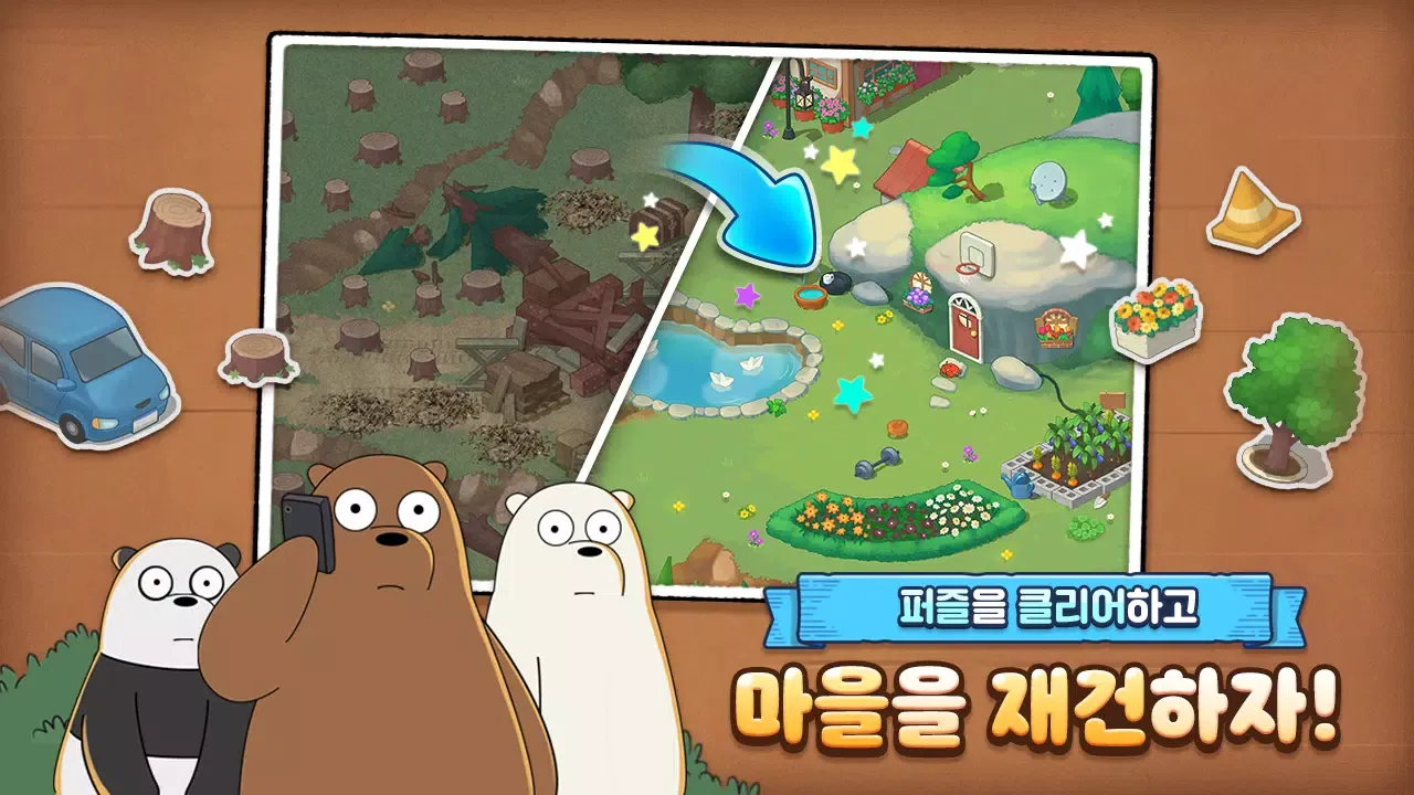 Enjoy a variety of events and missions that explode with excitement every day. Whether it's competing with a pizza-drone or clearing puzzles with the help of Baby Ranger and Wreck King, there's always something new to discover. Clear the missions and enjoy more stories from We Bare Bears!