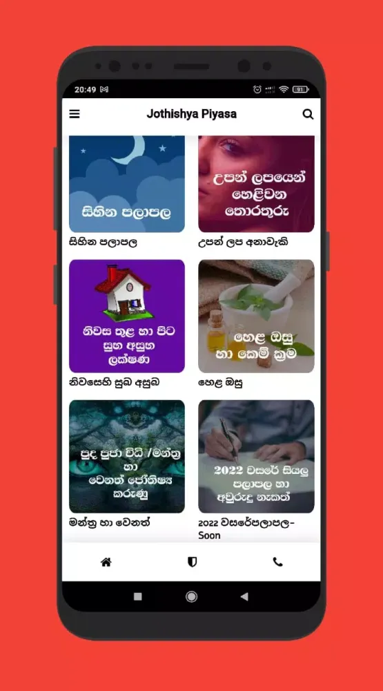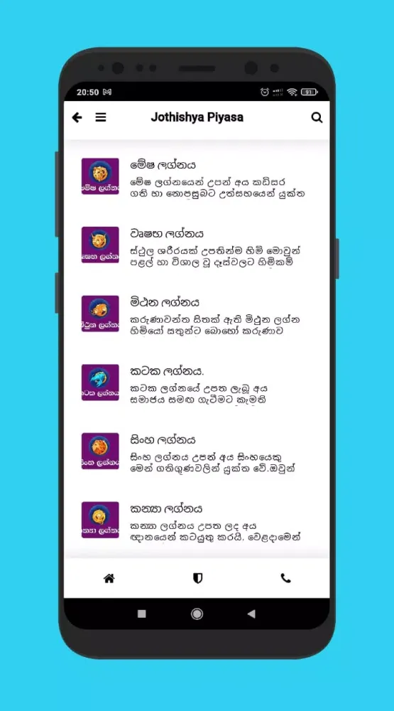 The Jothishya Piyasa Android application offers a comprehensive range of astrology services tailored for Sinhala users. This app is designed to provide daily horoscopes, predictions for the new year, annual forecasts, and auspicious timings for important events such as weddings, house construction, and other significant life moments.