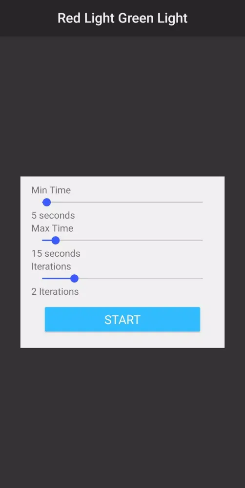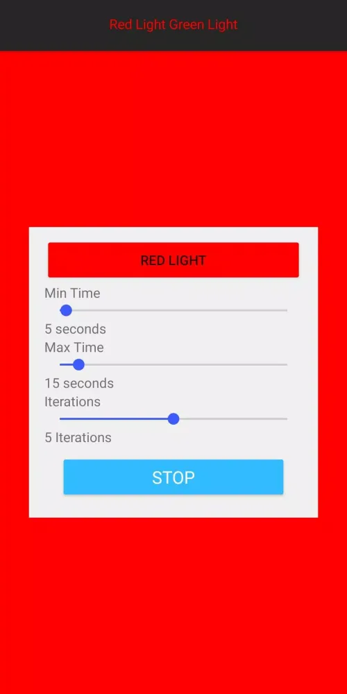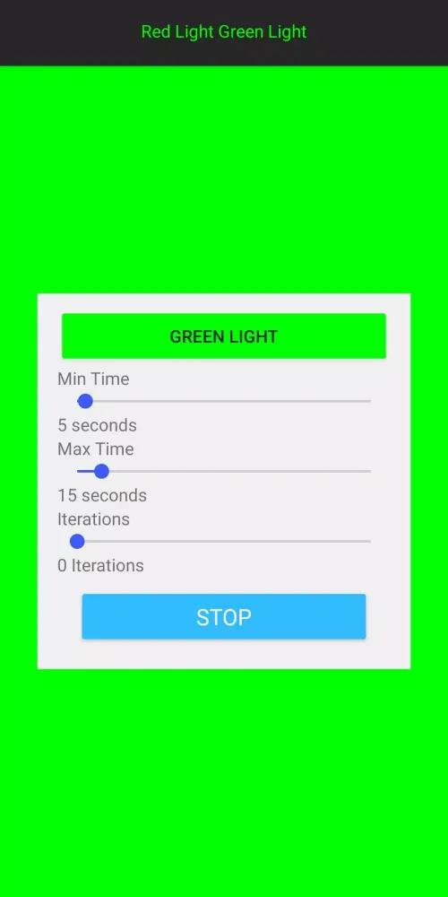 To get started, all you need to do is set up a few parameters. You can define the minimum and maximum time intervals in seconds for both the green light (go) and red light (stop) phases. Additionally, specify the number of iterations you'd like the app to run through. Once everything is configured, the app takes over, alternating between green and red lights according to the specified timing. Each cycle ends with a stop signal until the iteration count reaches zero, signaling the end of the session.