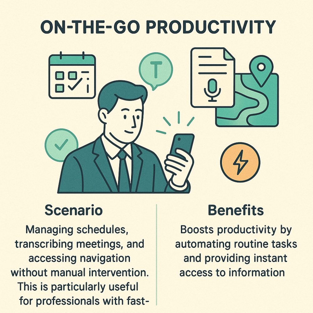 Scenario: Managing schedules, transcribing meetings, and accessing navigation without manual intervention. This is particularly useful for professionals with fast-paced lives.