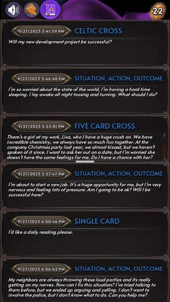 Another highlight of the app is its flexibility in terms of spreads. Whether you’re dealing with a straightforward query or seeking a more comprehensive understanding of a complex situation, Pythia Tarot provides multiple spread options to suit your needs. From single-card draws for quick answers to multi-card layouts offering deeper revelations, the choice is yours. As the creators of Pythia Tarot continue to innovate, they remain committed to listening to user feedback. Future updates promise exciting new features, ensuring the app evolves alongside its community.
