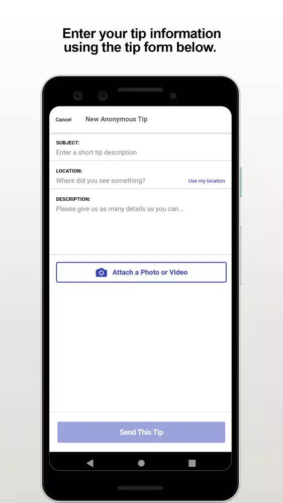 The sleek design of the P2PTip application ensures ease of use across all devices. Its straightforward layout guides users step-by-step through the submission process, making it accessible even for those unfamiliar with similar platforms. Additionally, the app supports multimedia uploads such as photos, videos, or voice recordings, enabling tipsters to provide comprehensive details about incidents they witness. These features enhance the accuracy and reliability of submitted reports while giving authorities the tools necessary to address issues effectively.