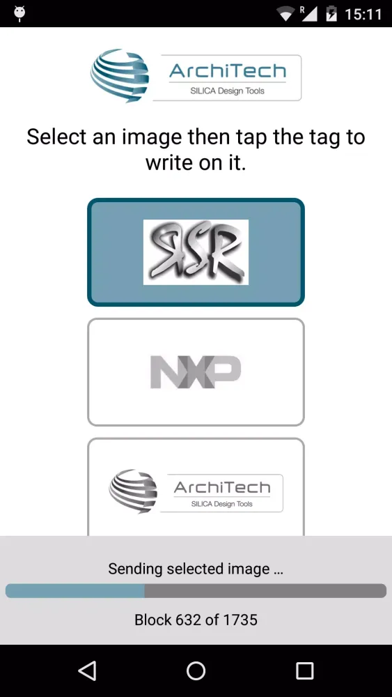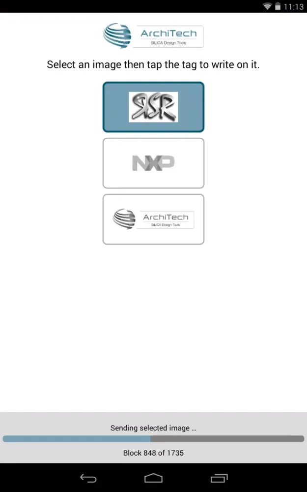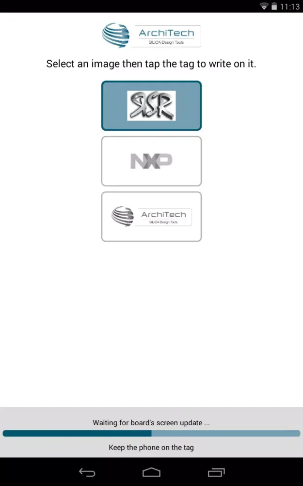 One of the standout features of the app is its intuitive interface. The description says it all: "Select an image and send it to your Architech Louvre via NFC." This straightforward approach ensures that even those who are new to NFC technology can use the app with ease. The ability to choose from a catalog of images or upload custom ones adds flexibility, allowing users to experiment with different scenarios. Whether you're sending a product image for testing, sharing artwork, or simply trying out the demo board’s capabilities, the app covers it all.