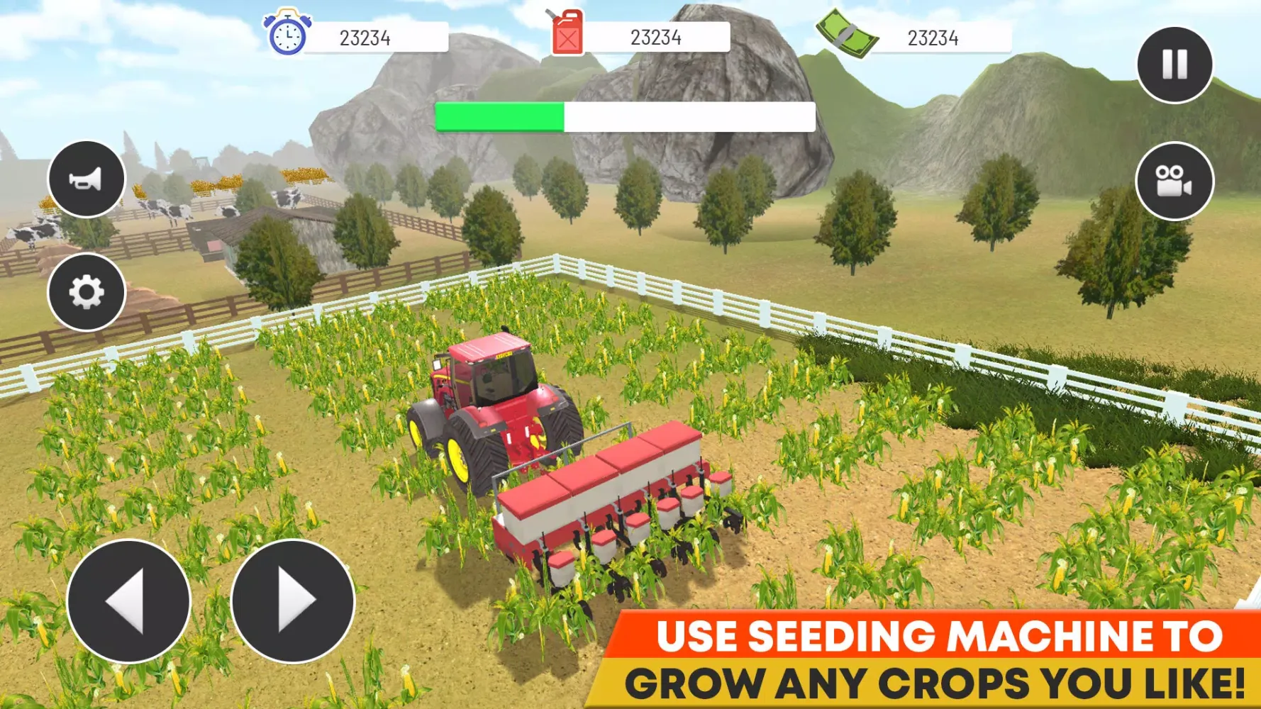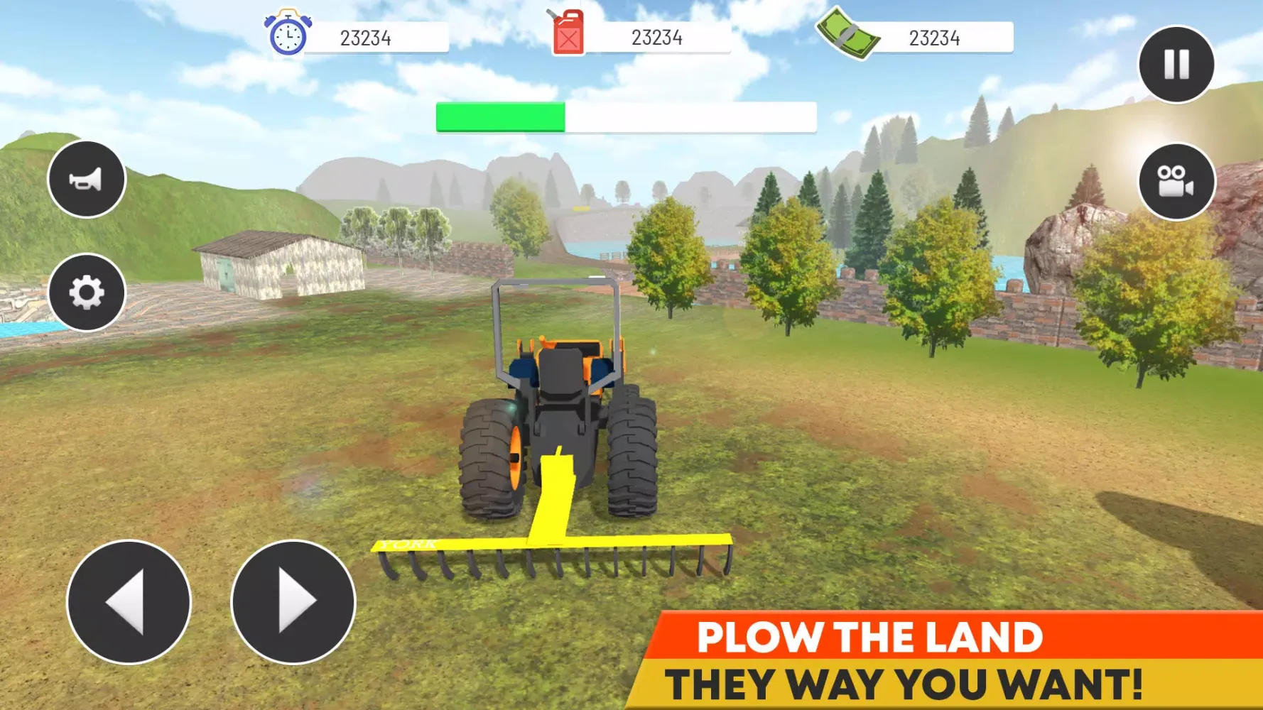 Future Farming Tractor Drive Simulator 2021 is not just another farming game; it provides a realistic farming experience. You can use a variety of farm machines, including tractors, plows, harvesters, seeders, sprayers, and trailers. The game features realistic and smooth machinery physics, ensuring that every action feels authentic. Whether you prefer wheel or button controls, you can easily maneuver your tractors and other farm equipment.