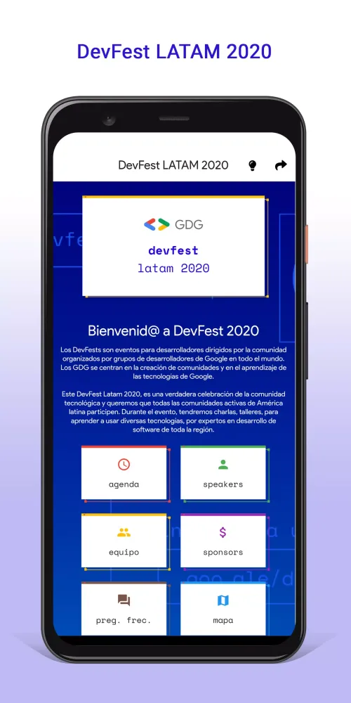 In this application, you can find comprehensive information about the event, including details about the schedule, speakers, organizers, and the communities involved in organizing this regional event. Whether you're a seasoned developer or just starting out, DevFest LATAM 2020 offers something for everyone.