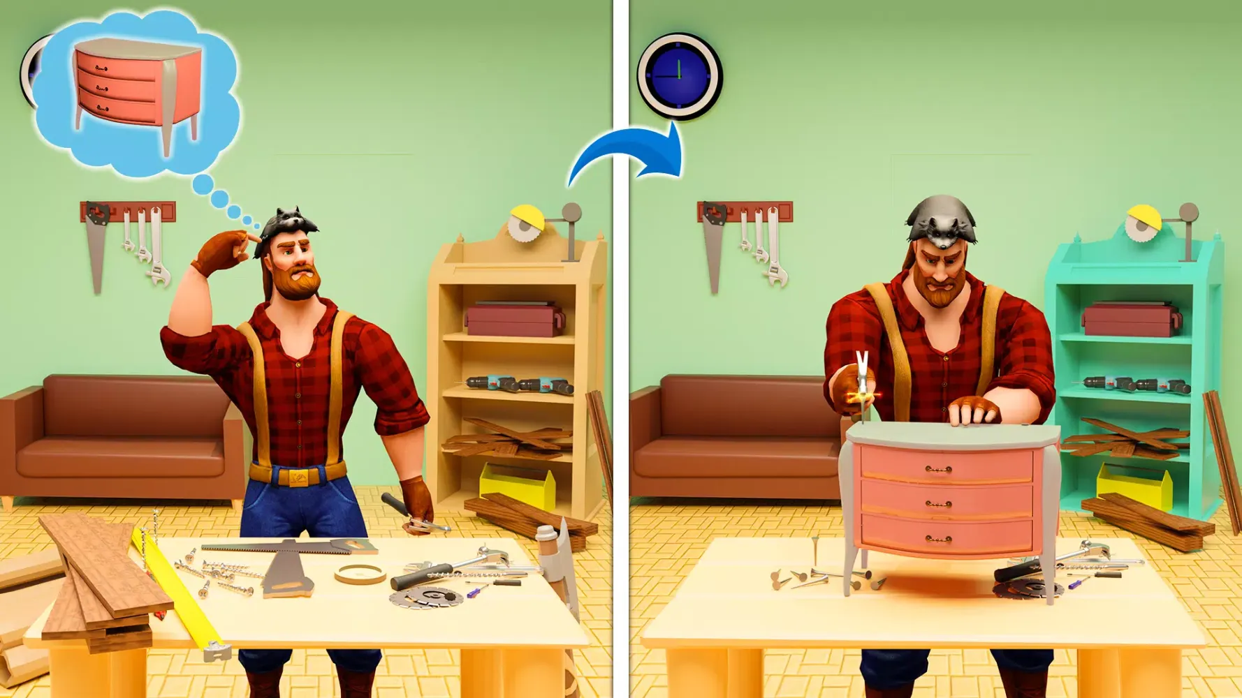 Download now and start your carpentry adventure today—fix, build, and create your own furniture world!