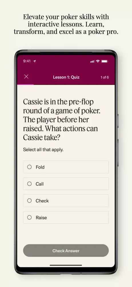 But Poker Power isn't just about gameplay—it's your ultimate educational tool. Even if you're not quite ready to take a seat at the poker table, our interactive lessons can help you master the art of poker. These lessons cover everything from basic rules to advanced strategies, ensuring that you have a solid foundation to build upon.