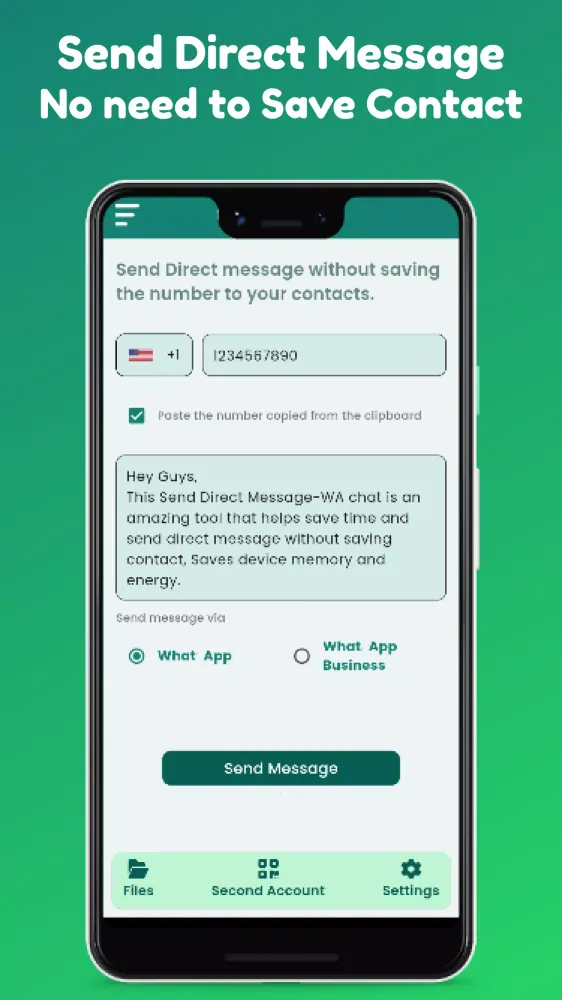 - Open the App: Launch the Send Direct Message - WA Chat app.