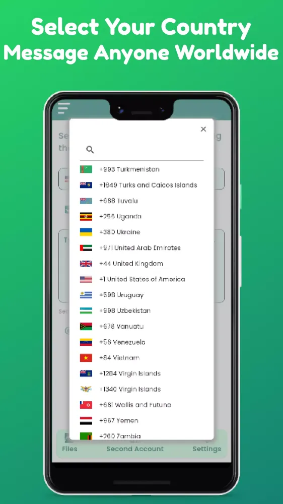 - Select Country Code: Choose the country code corresponding to the number you wish to message.
