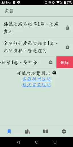 * 可搜尋存取許多知名佛經,如金剛經、楞嚴經、藥師經、阿彌陀經。