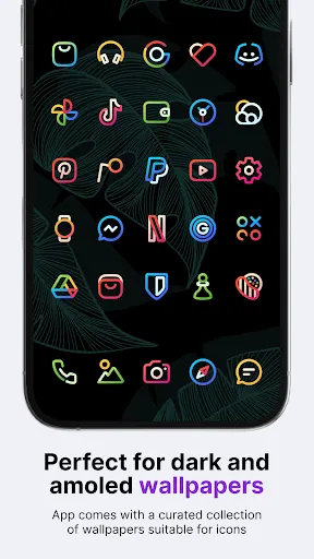 Aline icon pack has 2,905 icons, 20 custom wallpapers, and 5 KWGT widgets, so it’s all you need to personalize your phone how you like it. For the price of one app, you get content from three different apps. Aline icons are linear, and the color palette is vibrant, so it goes well with dark wallpapers. *To apply KWGT widgets, you need KWGT and KWGT Pro apps.