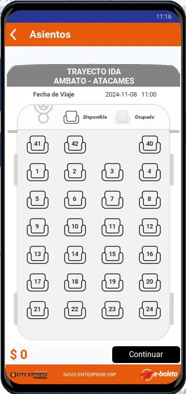 Cita Express is the official application for the CITA EXPRESS transport operator, serving the Ecuadorian market. This app provides users with an efficient and convenient platform to purchase bus tickets directly through its own infrastructure, ensuring a seamless travel experience without the need to rely on third-party services.