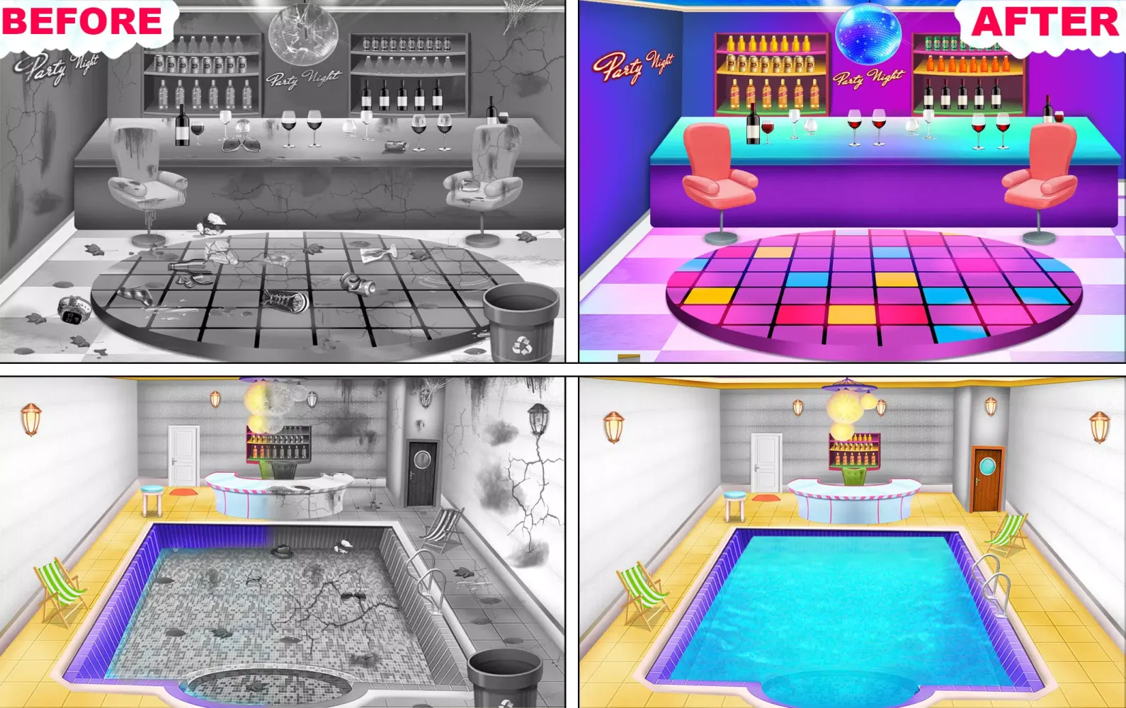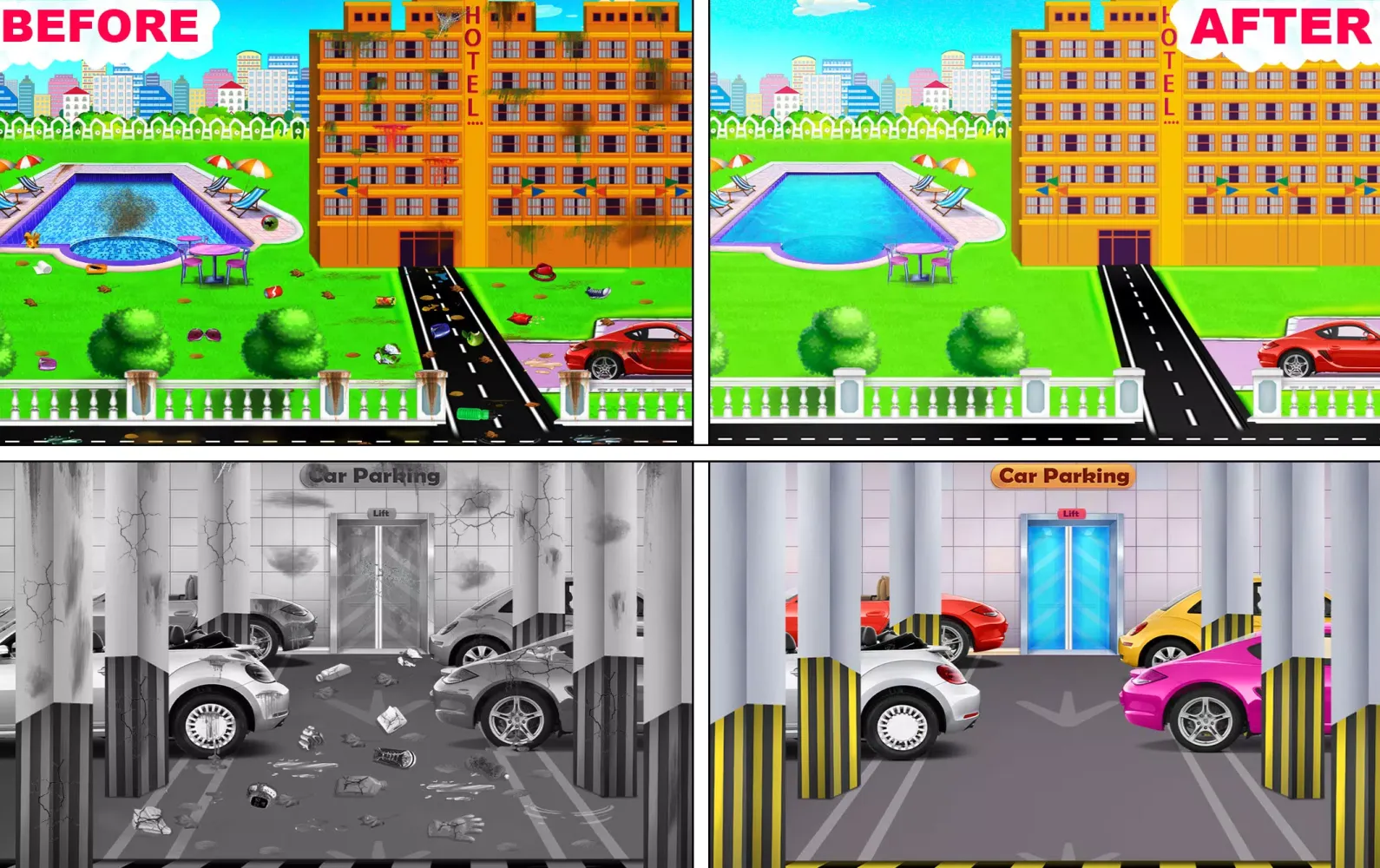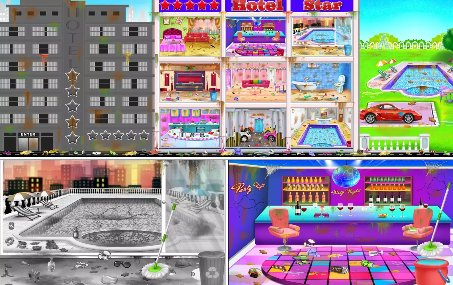 The game features a comprehensive collection of cleaning challenges set in different areas of a bustling hotel. Players will encounter various tasks such as cleaning the reception area, tidying guest rooms, and maintaining the cleanliness of the swimming pool, bathroom, bedroom, hall room, kitchen, and even the parking lot. Each location presents unique obstacles and requires specific tools to complete the cleaning process effectively. For instance, in the bathroom, you'll need to scrub tiles, unclog drains, and sanitize surfaces, while in the kitchen, you'll focus on washing dishes, wiping countertops, and organizing appliances.