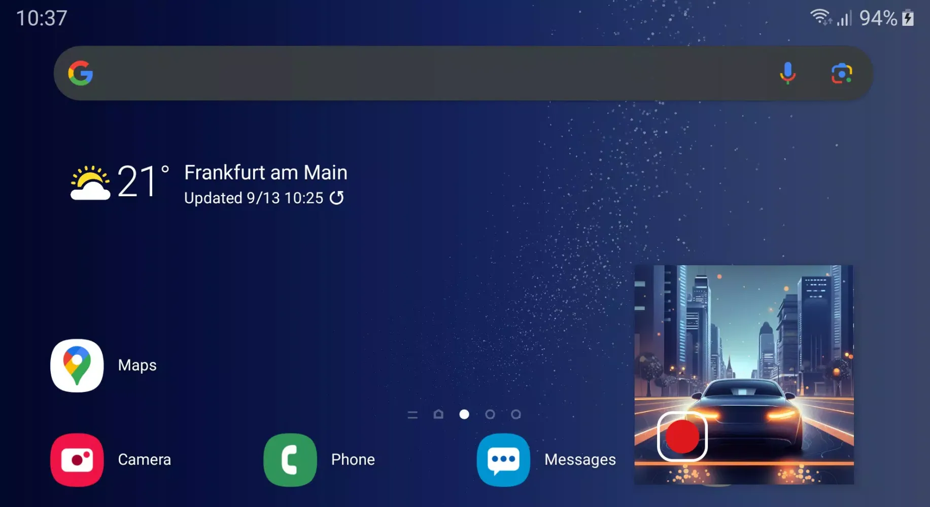 Comfortably and effortlessly, this application offers optimized car camera functionality. You can record continuously in the background (Picture-in-Picture mode) without interrupting other activities on your phone. This ensures that no crucial event goes unrecorded during your journey.