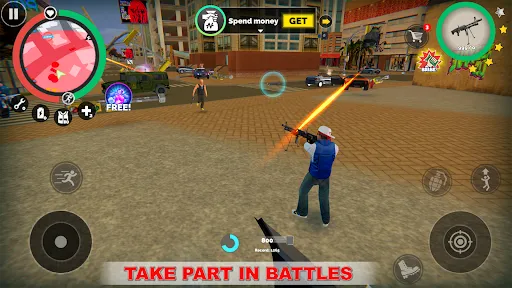Make sure to visit the in-game shop, to find all the tools you need to climb the top of the criminal world. Get yourself an arsenal of melee weapons and guns, ranging from classic pistols and SMGs to fantastic blasters. Drive through the city using a wide choice of cars and bikes, or fly across skyscrapers on a plane. If you want to achieve even more battle power you can buy a combat helicopter or a mighty mech.