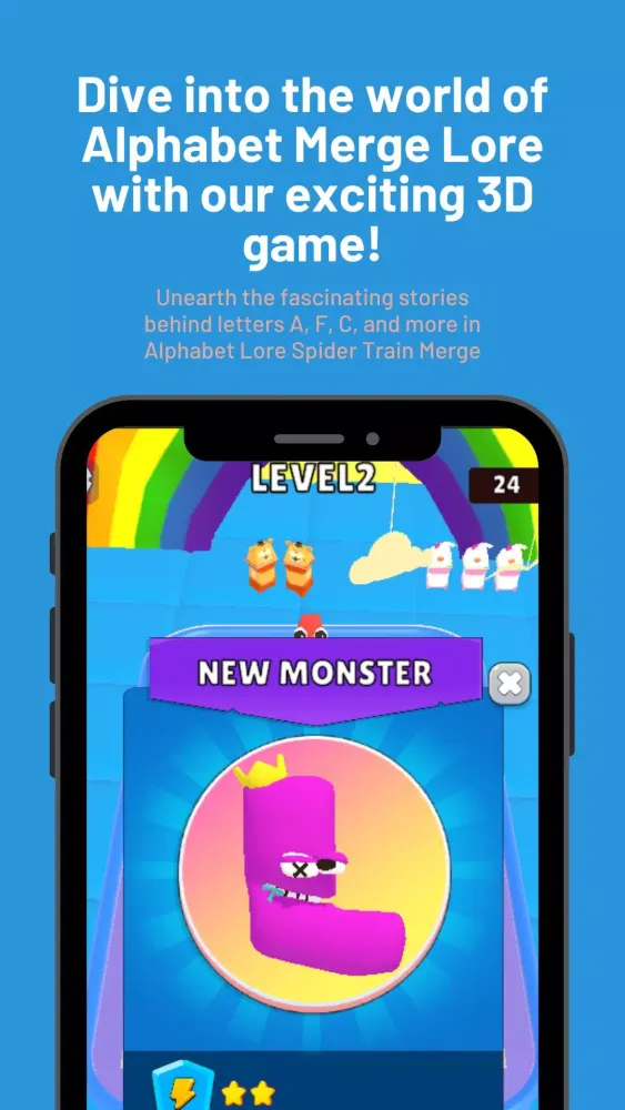 In this unique 3D adventure, you'll uncover the intriguing tales hidden behind each alphabet. The game seamlessly blends the elements of merging letters with a thrilling narrative that keeps you on the edge of your seat. Explore the mysterious stories of characters like F, A, C, and many others in the Alphabet Lore Spider Train Merge.