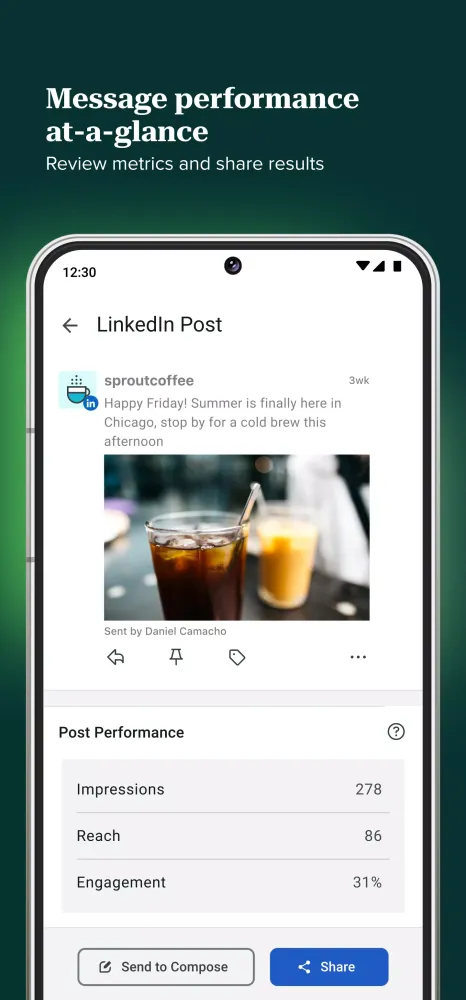 Sprout Social's companion app is designed to be your ultimate social media management tool on the go. With a Sprout Social account, you can effortlessly manage your social media presence from anywhere. Whether you're behind the counter assisting customers or en route to an important conference, this app empowers you to stay connected and engaged.