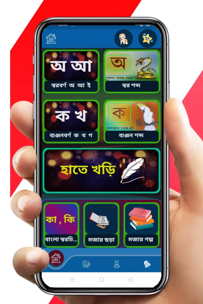 The app's primary goal is to simplify the initial steps of language acquisition by introducing the fundamentals of the Bengali script in a child-friendly manner. Through engaging animations, kids can interactively learn how to recognize, read, and write each letter of the alphabet. This approach not only enhances their cognitive abilities but also instills a deep appreciation for their ancestral language and cultural heritage.