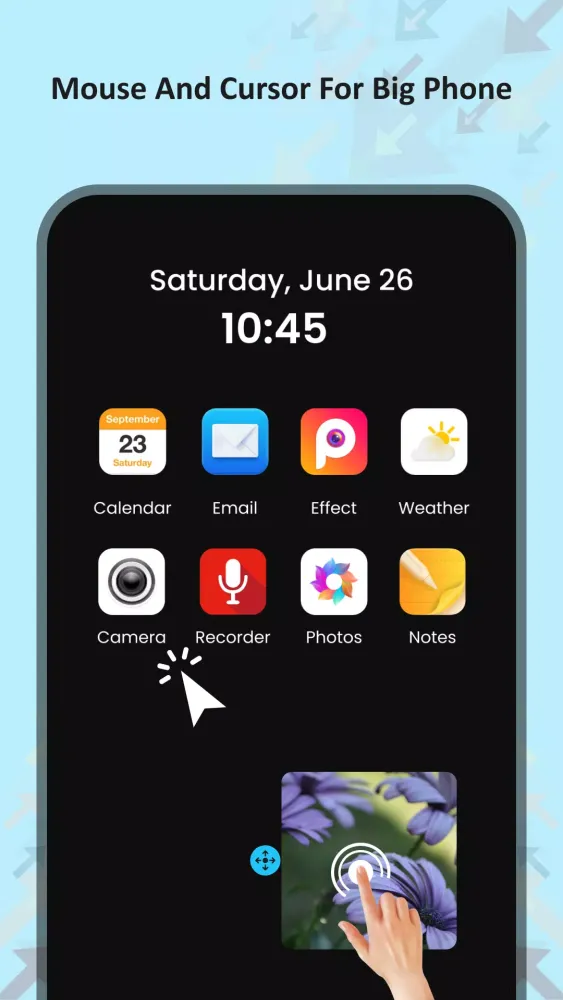 The Mouse & Cursor For Big Phone application is designed to provide a seamless experience for controlling large smartphones or tablets with just one hand. With this app, you can easily display a mouse pad and cursor on your phone screen, allowing you to navigate effortlessly.