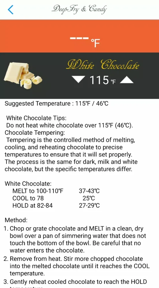 The "iChef CT-10" application is designed to seamlessly connect with the Candy & Oil Deep Fry Thermometer device via Bluetooth. This powerful integration allows users to monitor and manage their cooking process with unparalleled precision and convenience.