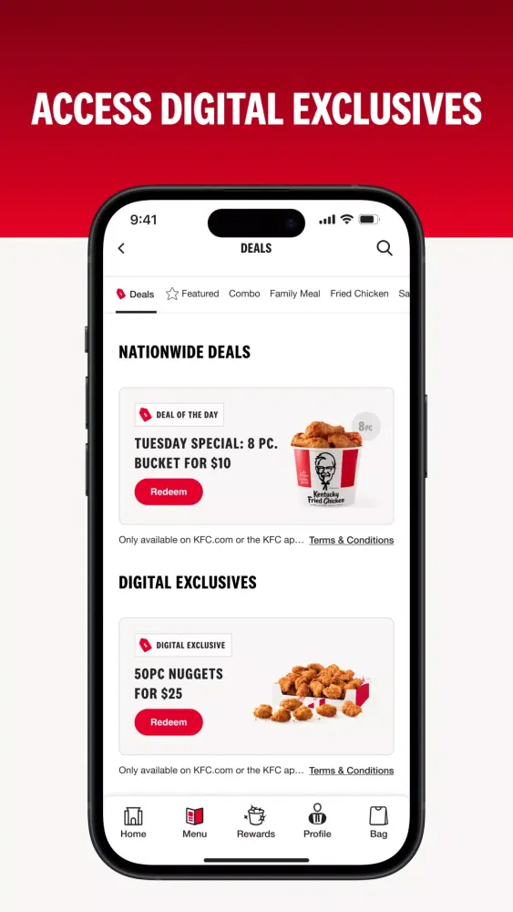 Discover exclusive deals and discounts that are only available through the KFC app. Save money on your favorite meals and be among the first to try new limited-time offers. With the KFC app, you can stay updated with the latest promotions and take advantage of special discounts tailored for app users.