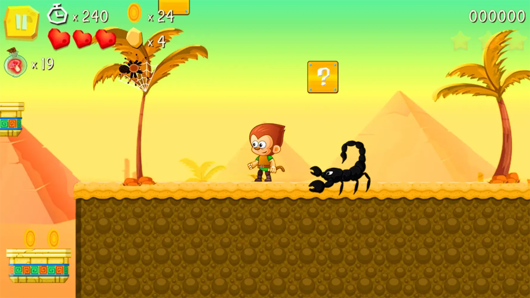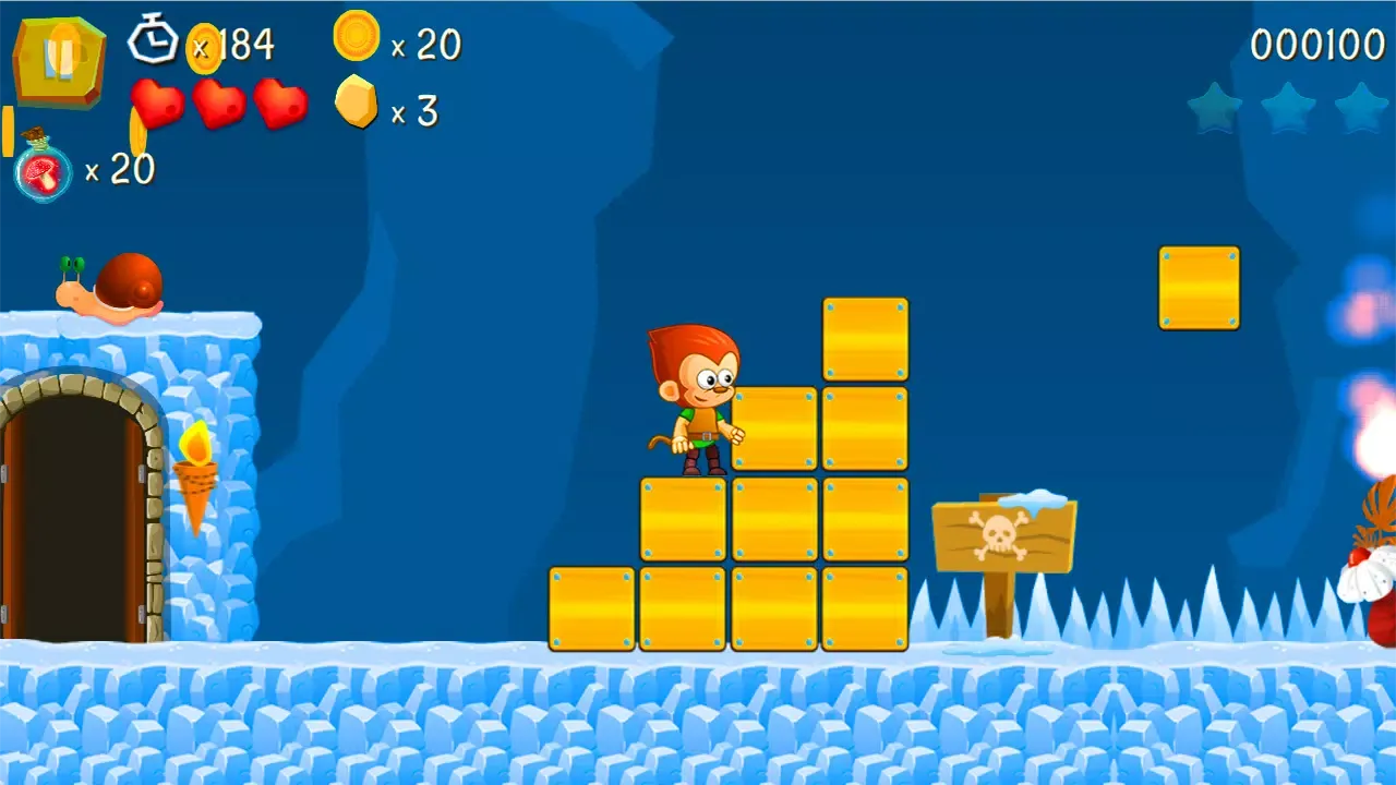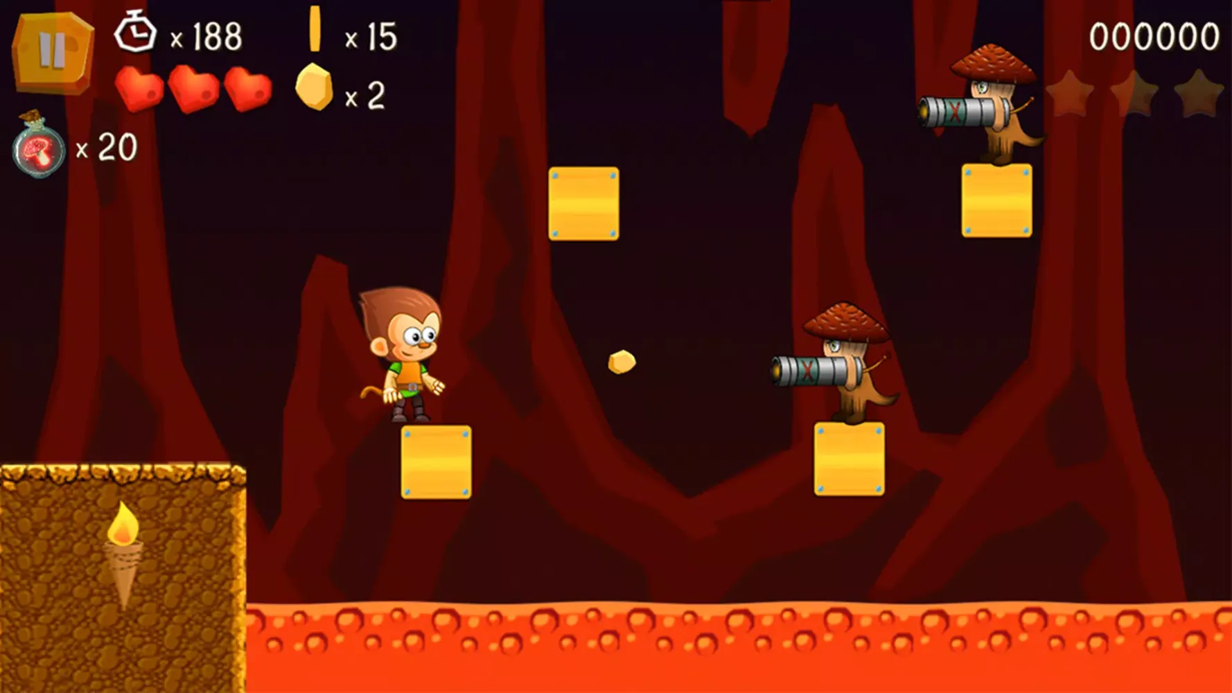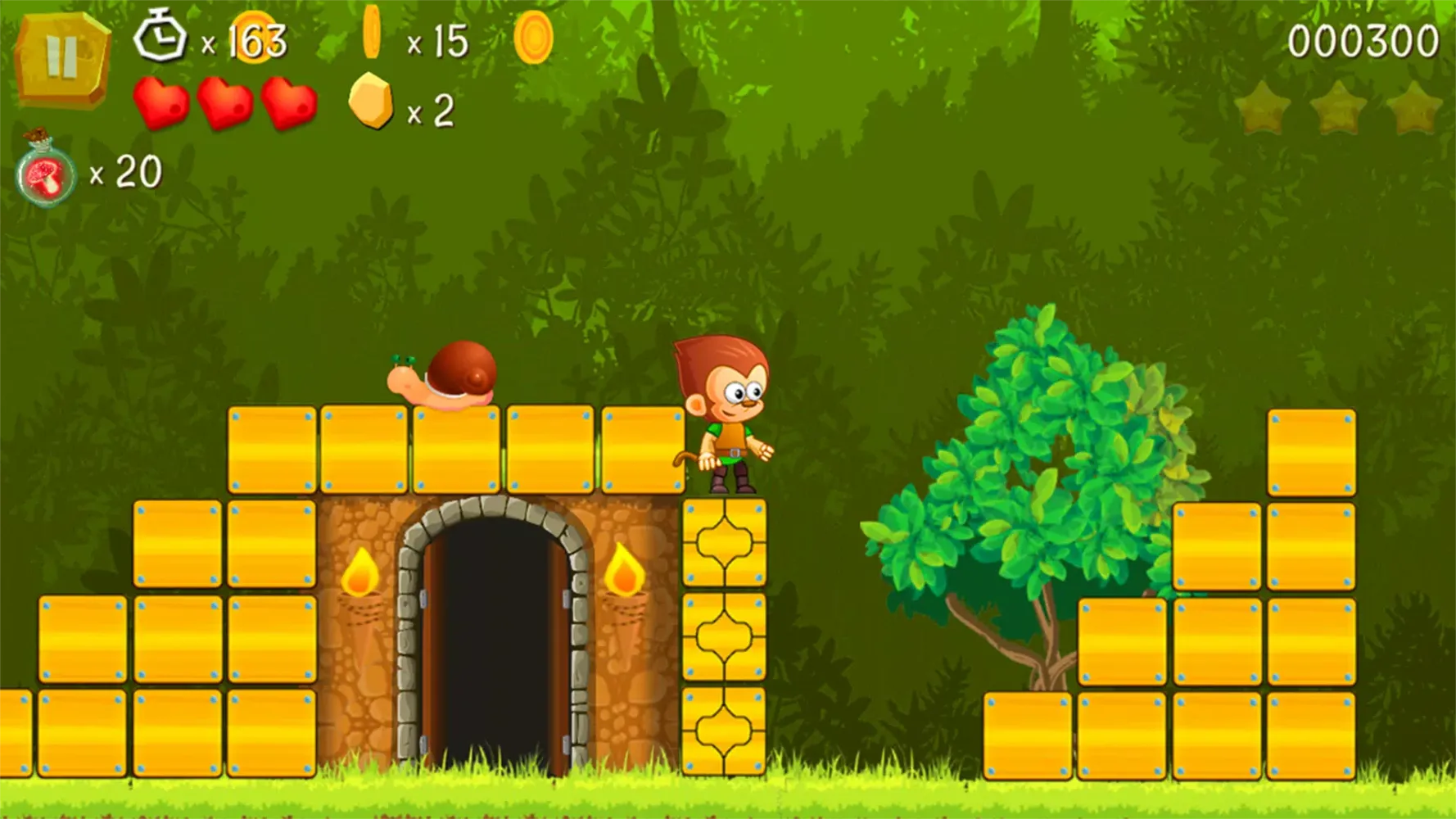 In Super Kong Jump – Monkey Bros & Banana Forest Tale, you play as Mono, a brave monkey on a mission to overcome obstacles and defeat enemies to find his brother and save the world. Jump and run through exciting levels filled with breathtaking landscapes and hidden spots.