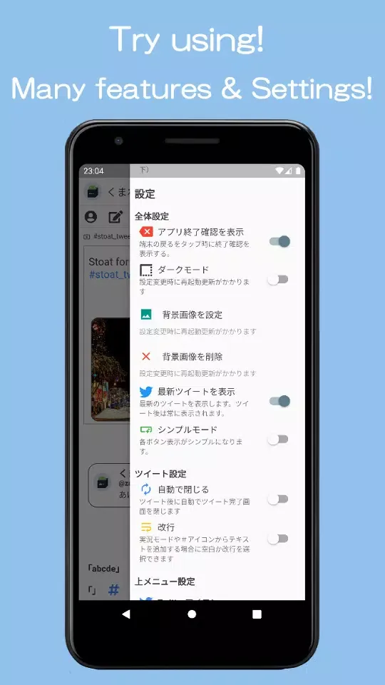 We welcome feedback and suggestions for improvements. You can reach out via Google Play reviews, in-app feedback forms (both anonymous and non-anonymous), or through email at shichi.improve@gmail.com. Follow us on Twitter @zshichi18 and use the hashtag #stoat_tweet to stay updated and engaged.