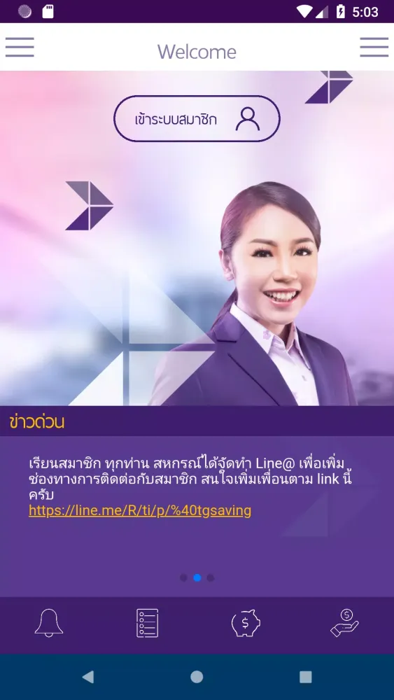 The TGSaving application is a specialized tool designed for employees of Thai Airways and other individuals who are either members of Thai Airways cooperatives or simply interested in exploring related resources. This application serves as a comprehensive platform for accessing essential information about cooperative organizations while ensuring secure access for authorized users. The application is structured into two distinct sections, each catering to specific needs.