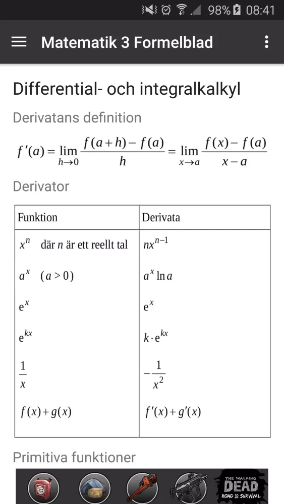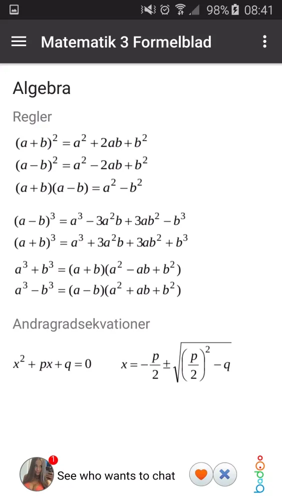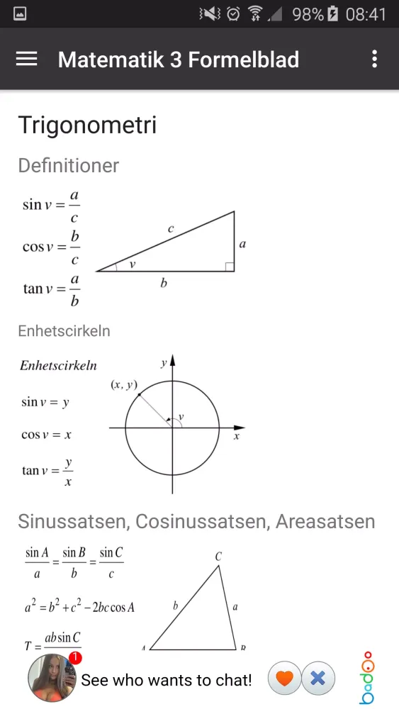 Are you a student preparing for Mathematics 3 exams or someone who needs quick access to essential mathematical formulas? Look no further! The "Matematik 3 Formelblad" app is designed to be your go-to resource for all the formulas you need in this advanced math course. Whether you're studying calculus, probability, statistics, or other key topics, this application ensures that everything you require is at your fingertips.