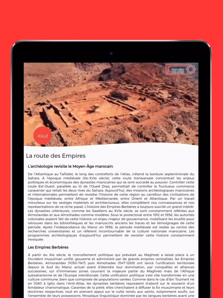In conclusion, "La route des empires" is more than just an application; it's a portal to the past, a chance to walk in the footsteps of history. Whether you're a history enthusiast, a student of archaeology, or simply someone who appreciates the beauty of ancient civilizations, this app offers an unparalleled opportunity to explore and understand the rich legacy of southern Morocco. Join us on this unforgettable journey through time and space, and let the stories of the past inspire you today.