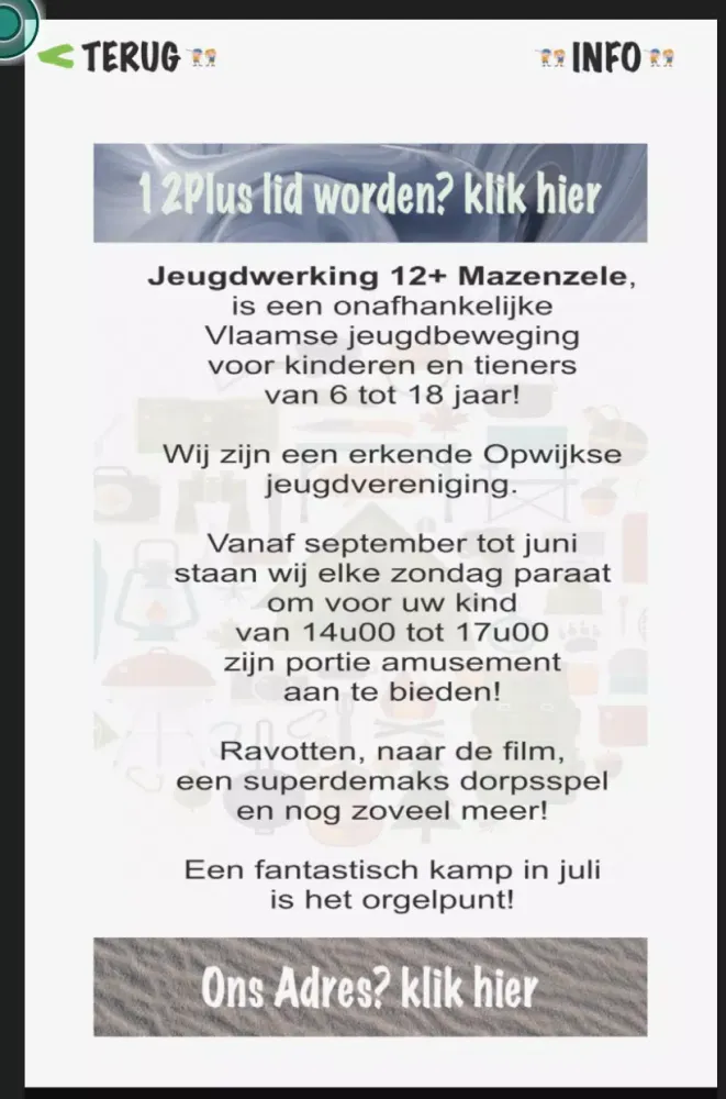 In addition to activity announcements, Jeugdwerking 12Plus acts as a central hub for sharing important information related to each event. From registration details to safety guidelines, users can access all necessary resources within the app itself. This centralized approach minimizes confusion and streamlines the process for both organizers and participants alike.