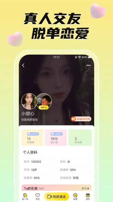 视频聊天:无论您是在家、办公室还是在外旅行,悄悄视频聊天交友都让您可以随时随地与朋友面谈,用视频传达真实的情感和表达您的想法。