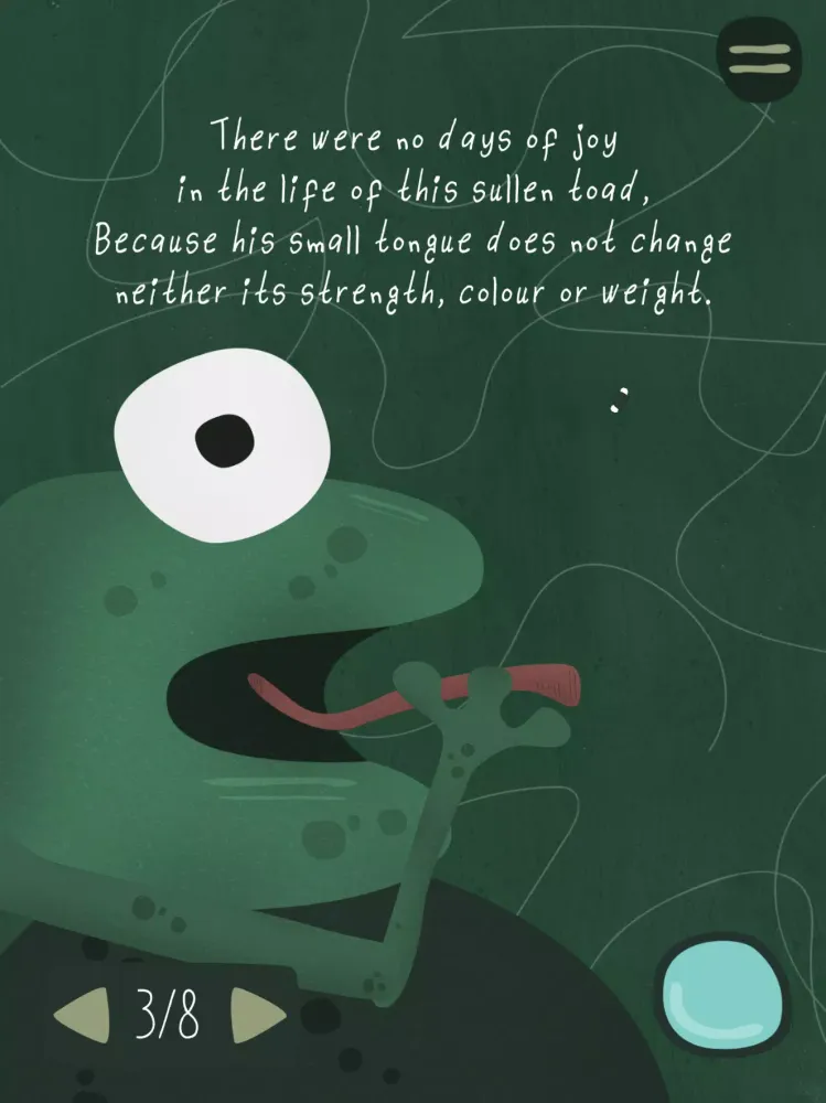 "Verde Sapo" is an enchanting journey that invites you to step into a world brimming with imagination, creativity, and self-discovery. This captivating application brings to life the story of Verde Sapo, a character whose wide eyes reflect curiosity and wonder. Through the artistry of illustration and animation, "Verde Sapo" transforms static images into dynamic narratives, drawing users into a universe where every frame tells a story.