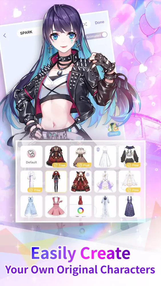 With AVAkuma, the possibilities for customization are truly boundless. Create your own characters or virtual avatars with unlimited slots and dress them up in the latest anime fashion. Mix and match thousands of clothes, hats, hairstyles, and more. You can change every aspect of your character, from their hairstyle to their skin color, mouth, and more. Design your original characters (OCs) with countless hairstyles, eyes, outfits, and accessories inspired by anime and manga styles.
