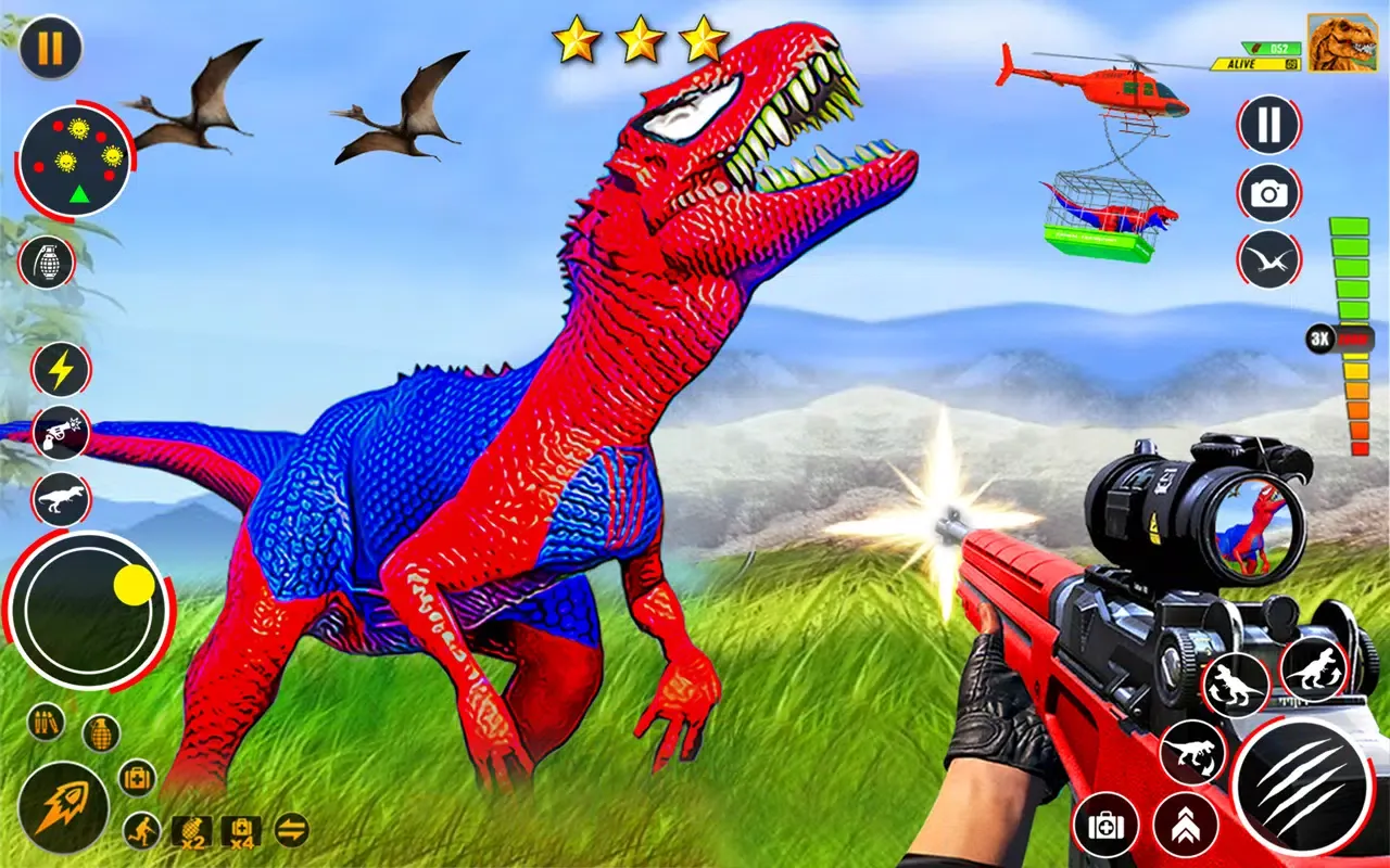 Explore vast woodland areas teeming with life, where dinosaurs roam freely. Your mission is to hunt these majestic creatures using a variety of high-tech weaponry. Whether you prefer the precision of a sniper rifle or the raw power of a shotgun, there's a weapon for every style of play. Each mission challenges you to complete tasks with accuracy and efficiency, testing your skills as a seasoned hunter.