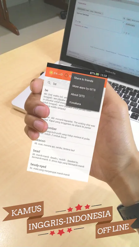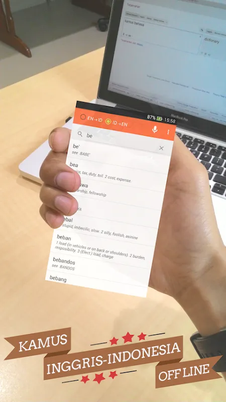 Bahasa Dictionary (BD) is an offline English-Indonesia dictionary and vice versa. It contains almost every popular words and additional not-so-popular words in English and Indonesia so you won't have any problem finding words in this application.