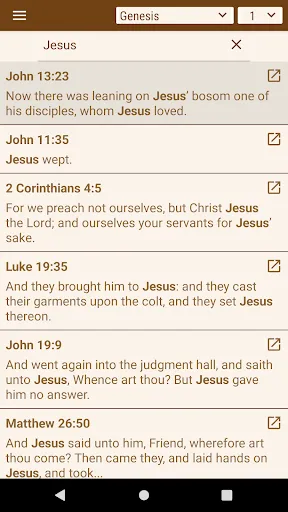 This version of King James Version + Apocrypha works offline, is completely free, contains no ads. no tracking and is easy to share. All of this with a minimized APK size.