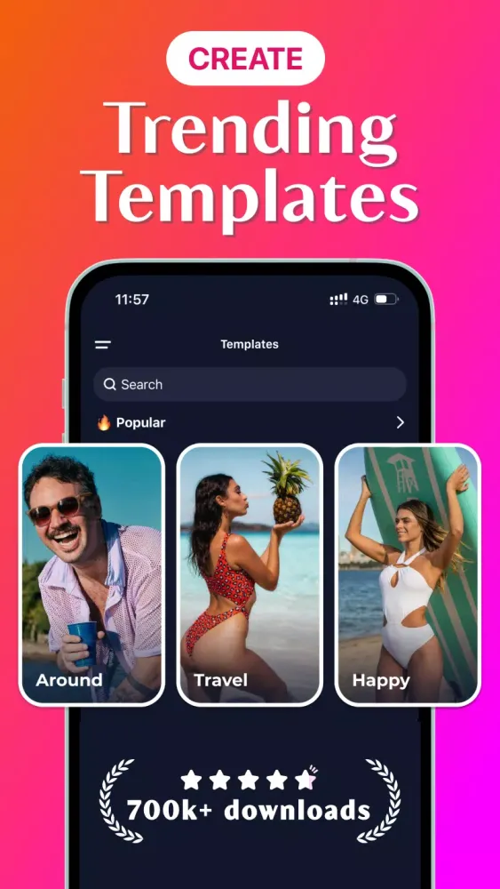 Use Video Templates to create videos, photos, stories, and social media content with ease. Unleash your artistic side, capture trending moments, and make your mark with Video Templates – the ultimate video creator, maker, and editor. Simply add your photos and videos, and we'll transform them into unique videos with music, presets, and templates.