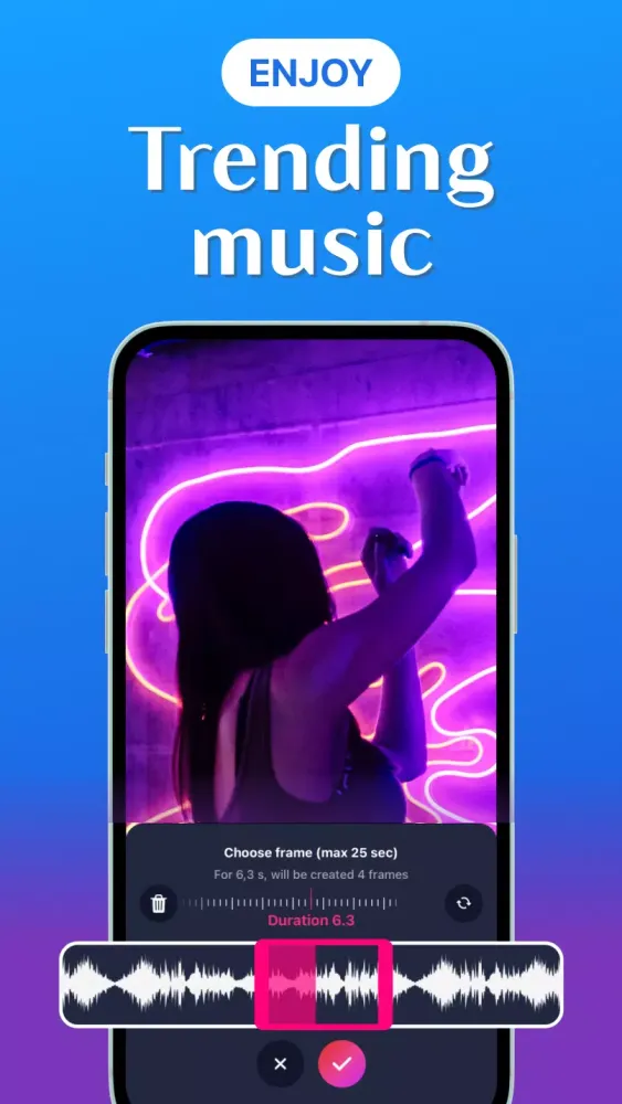 - Trending Templates and Music: Stay current with the latest trends by accessing a curated selection of popular templates and music tracks. Use our editing app with songs to create high-quality content.