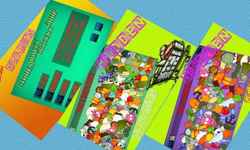 The concept behind "Hidden Object Grocery Shop" is straightforward yet captivating. Your mission is to locate hidden items within various grocery store scenes. These scenes are filled with a variety of everyday objects, from fruits and vegetables to canned goods and kitchen utensils. As you progress through the game, the difficulty level increases, providing a rewarding experience as you tackle more complex puzzles. The game features three distinct difficulty modes—easy, medium, and hard—allowing you to choose the perfect challenge based on your skill level. Whether you're a beginner or a seasoned puzzle solver, there's always room to grow and improve.